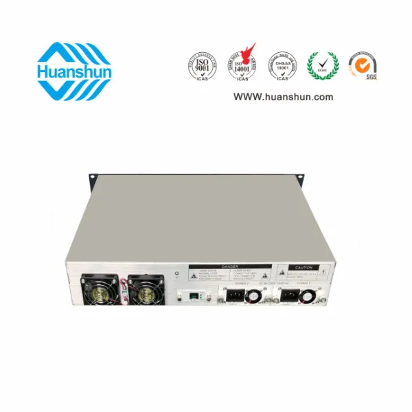 大功率光纖放大器EYDFA | YGF1508-16C | 19 " 2U/3U標準機箱,-5 ~ +10 d Bm輸入,8路標稱規(guī)格(16、17、18、19、20、21、22、23dBm)放大輸出,并支持下調(diào)-2dB,安全連接模式,NF ≤ 5dB(0dBm時);內(nèi)置FWDM合波器,插播損耗 ≤ 1dB;雙模塊熱插撥電源,AC90 ~ 255V或DC-48V供電,RJ45標準網(wǎng)管(支持SNMP、WEB) |