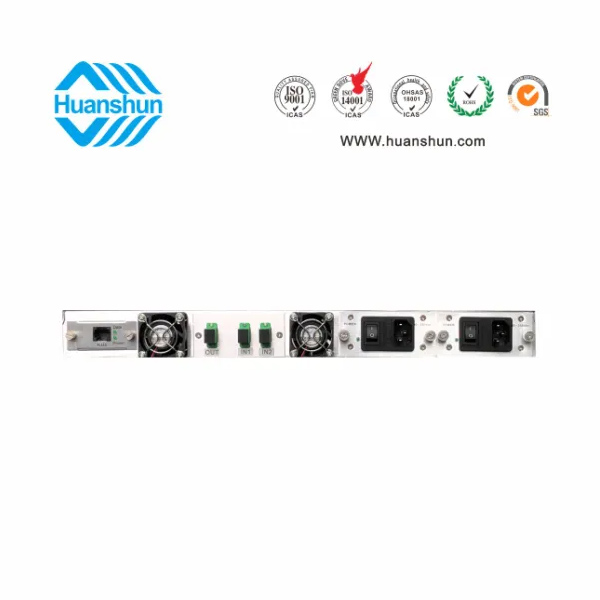 YGF1522T-C | 主波-3 ~ +10 d Bm輸入,插播按需求功率配置,合波放大標稱規(guī)格規(guī)格(22、23、24)輸出,并支持上調(diào)+0.5dB,下調(diào)-3dB,NF ≤ 5dB(0dBm時);1U標準機箱,雙模塊熱插撥電源,AC90 ~ 255V或DC-48V供電,RJ45標準網(wǎng)管(支持SNMP、WEB) | |
