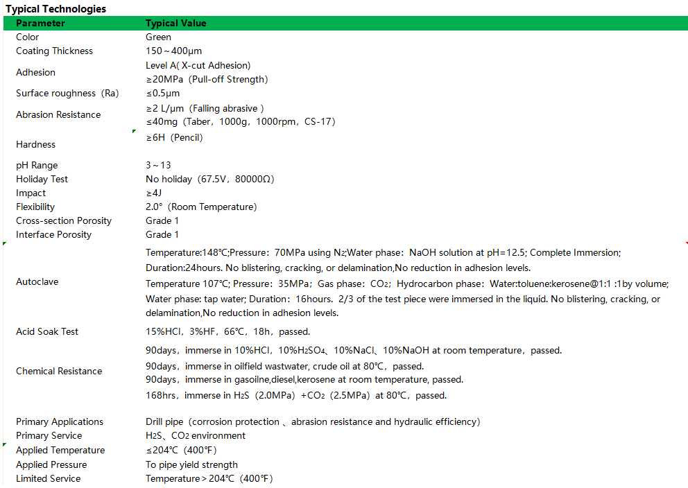 Primary ApplicationsDrill pipe(corrosion protection 、abrasion resistance and hydraulic efficiency).